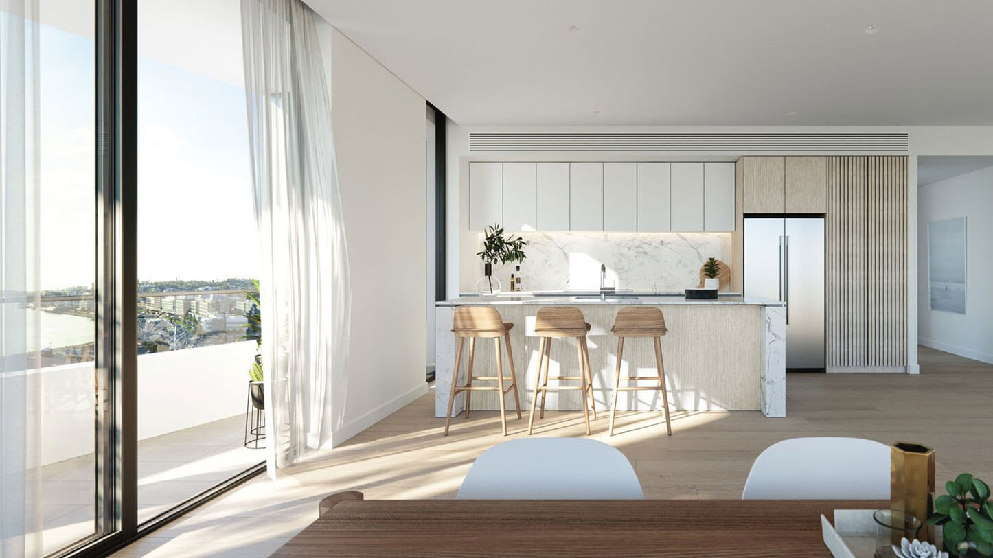 Bowline’s elegant contemporary design, with floor-to- ceiling glass, spacious open-plan layouts and select premium finishes ensure apartments are bright, modern and highly sophisticated.